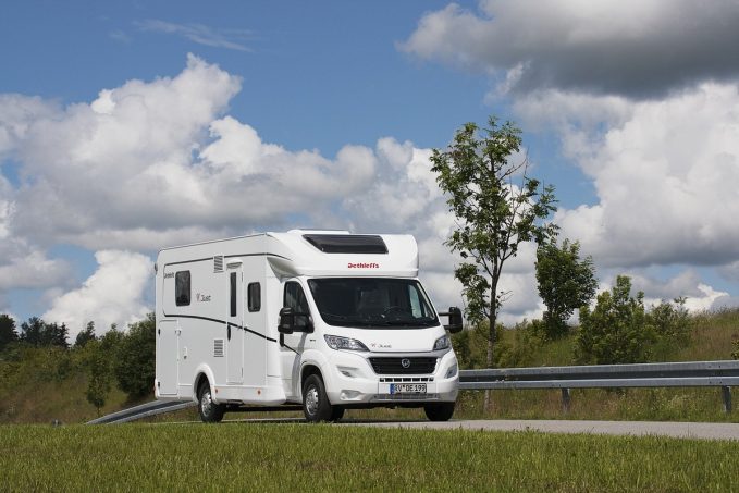 Sur ce gabarit le plus long, Dethleffs propose quatre profilés à dénomination commune T7052, mais pourvus de lits jumeaux et de lit central, la différence s’opérant pour chaque type de couchage avec un salon classique (T7052 EBL et DBM) ou des banquettes face-face (T7052 EBL et DBL).