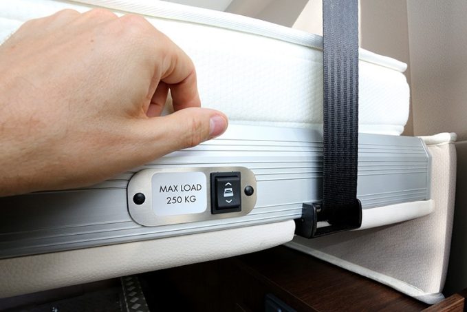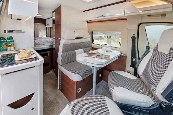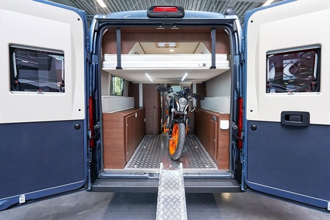La gamme Karman-Mobil Davis avait inauguré l’an dernier un équipement inédit avec un toit avant panoramique (sky roof) offrant un maximum de clarté en cabine et en dînette. Le millésime 2021 se révèle encore plus riche avec l’arrivée de la version Davis 630, un Fiat Ducato de 6,36 m embarquant un grand lit arrière relevable électriquement pour dégager la soute afin d’y charger des vélos ou une moto. Son plancher reçoit pour l’occasion une plaque de renfort. Une rampe amovible est aussi prévue pour faciliter la montée ou la descente d’un deux-roues. Le plan du Davis 630 est des plus classiques avec un salon capable d’accueillir jusqu’à quatre personnes, un coin cuisine avec un bloc en long et une petite salle d’eau regroupant lavabo, douche et WC.