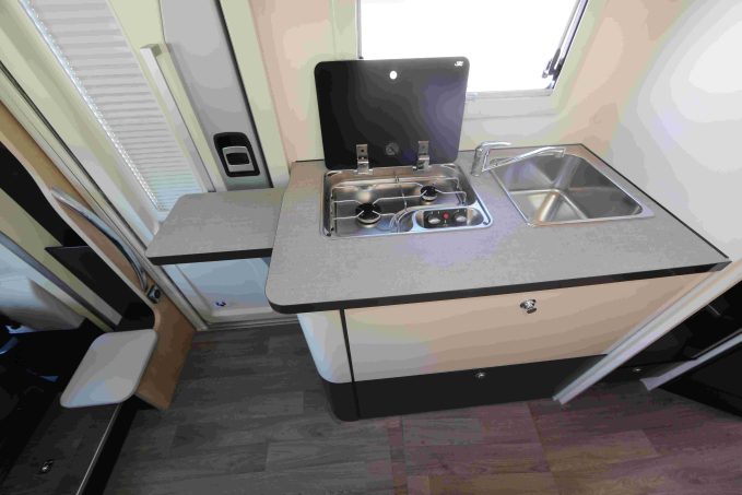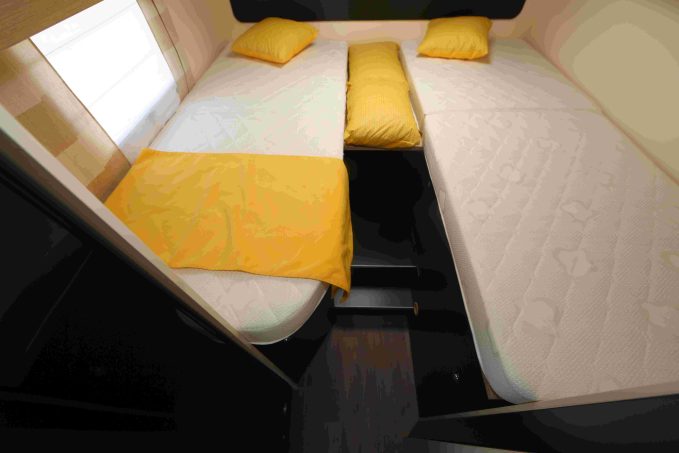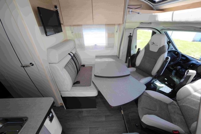 La cellule est bridée au châssis cabine Fiat Ducato, sans voie arrière élargie (on comprend pourquoi), animé de série par le bloc moteur 120 ch. Un gabarit passe-partout qui séduira les adeptes des petits véhicules. Voyez ci-dessous notre vidéo de ce modèle original.