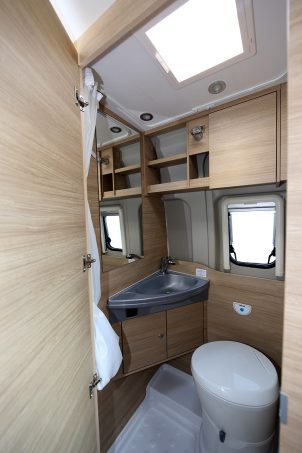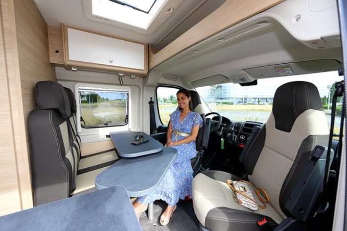 Le Pack Confort (+ 1 099 €) ajoute un marchepied électrique et une moustiquaire (côté porte latérale droite), un lanterneau Midi-Heki (au-dessus de la dînette) ainsi qu'un rideau occultant dans le poste de pilotage, un rideau et un pommeau dans la cabine de douche.