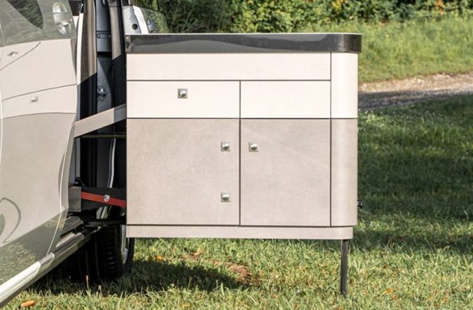 Plus proche d'un camping-car, la version Campstar embarquera un mini-réfrigérateur et une kitchenette latérale extractible (avec évier et réchaud) pour un usage interne ou externe (grâce à un nouveau système de bras pivotant Easy Move). Sa banquette biplace coulissante se transformera aussi en lit d'appoint. Une table démontable pourra être installée au centre pour s'y retrouver à quatre convives.