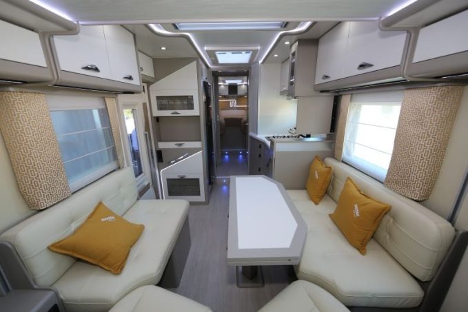 Toutes les implantations connues seront conservées sur les Calgary et Volga Evolution afin d'offrir un large choix entre des modèles avec des salons à banquette en L ou banquette en vis-à-vis, sur des véhicules affichant entre 7,99 m et 8,50 m de long. La nouvelle ambiance Scandinave, associant bois vernis naturel et laqué pour le mobilier, sera également au programme.