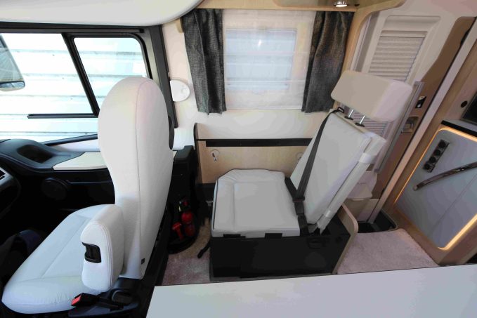Un intégral poids lourd permet quelques « fantaisies ». Comme celle de monter un réservoir d’eau de grande capacité (180 litres). Le i790 est aussi équipé d’un chauffage central performant qui permet de chauffer la cellule de façon uniforme en plein hiver. Les températures négatives n’effraient pas notre véhicule très bien isolé. On peut remercier le double-plancher rangement qui renforce l’isothermie. Il peut geler dehors, les occupants resteront bien au chaud, confinés dans le coquet intérieur devant l’écran géant de la télé.