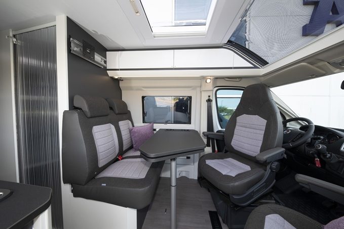 Comme de coutume chez Adria, cette nouveauté n’est proposée, pour l’instant, qu’en finition haute Supreme à un tarif de 55 950 €. Une exécution offrant, outre la cabine découpée, le skyroof et un équipement particulièrement complet (climatisation, carrosserie grise, jantes alliage, marchepied électrique…). Notons, également, une nouvelle isolation Ecofiber 40 (sandwich aluminium/fibre polyéthylène) plus efficiente, grâce à la souplesse de son matériau lui permettant de mieux épouser les formes de la carrosserie.