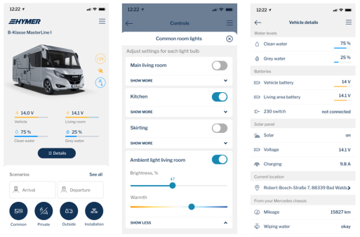 La série B-ML chez Hymer va prochainement être équipée d'un système de contrôle ultra-complet du camping-car (cellule et porteur) depuis son smartphone.