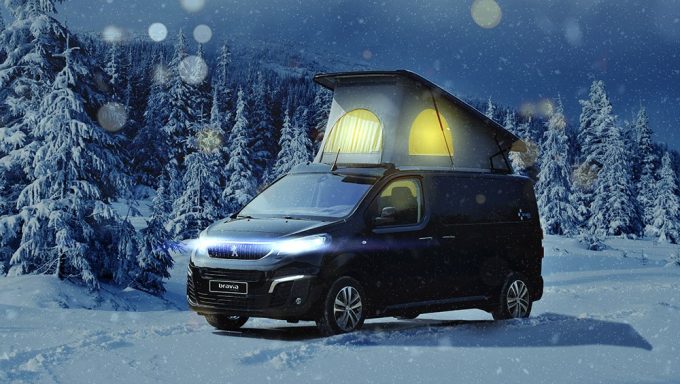 Aménagé sur un Peugeot Traveller, le Bravia Mobil Swan 95 reprend la même philosophie que ses plus sérieux concurrents à savoir le Campster sur Citroën Space-Tourer et le CrossCamp sur Toyota ProAce Verso.