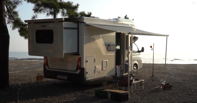 Les Coréens du Sud apprécient de plus en plus le camping-car. Hyundai, le grand constructeur automobile du pays, vient d’ailleurs de présenter une capucine avec slide out pour coller au mieux au marché grossissant du véhicule de loisirs.