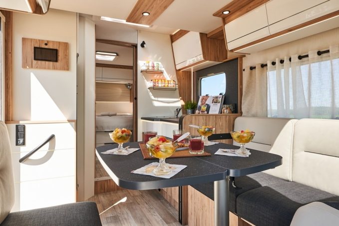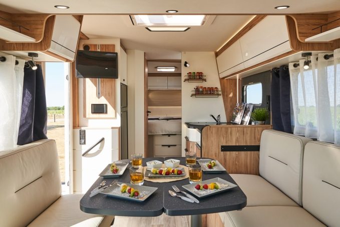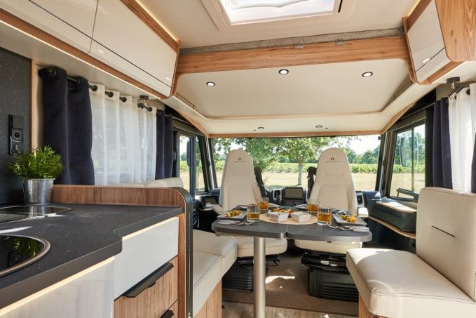 Dans le détail, les profilés Nomade s’accompagnent donc de packs divers et variés tel que les packs Média 8", hauts parleurs avant et arrière, caméra de recul...), Energie AGM (panneau solaire de 100 W, batterie auxiliaire 95 Ah, booster), Luxe intérieur (volant et pommeau cuir, compteurs chromés, commande au volant...), Confort (porte centralisée, moustiquaire occultation cabine et moquette) ou encore Sat (antenne automatique et TV 18,5"). A cela s’ajoute le store extérieur, les jantes alu 16", les banquettes simili-cuir… Les prix de ces 6 modèles sont compris entre 59 300 € et 62 300 €.