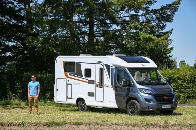 Depuis deux saisons, la tendance des cellules étroites s’amplifie, notamment dans l’offre des constructeurs allemands. Disposant déjà d’une série de ce type, Bürstner lance une refonte totale en matière de design pour ses Travel Van, représentés pour l’heure par deux modèles : un de 5,99 m avec lit transversal (T590 G, à partir de 54 990 €) et un autre de 6,60 m avec couchages séparés sur soute (T620 G, à partir de 56 490 €). Ces deux profilés arborent donc un nouveau look avec cabine grise et marchepied intégré, décor de carrosserie entièrement revu, face arrière avec feux hybrides… A bord, place au mobilier Sandy Grey – plus lumineux –, aux élégants stores Vario et au sky roof de série. Bürstner annonce également le retour de l’appellation Nexxo Van qui constituera la finition Premium de ces profilés étroits.