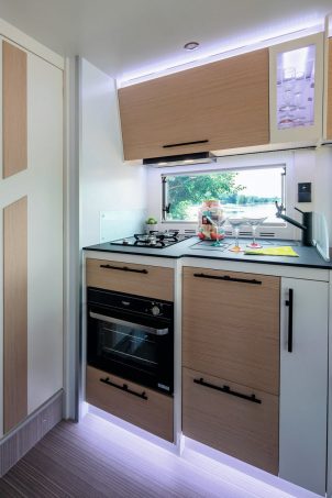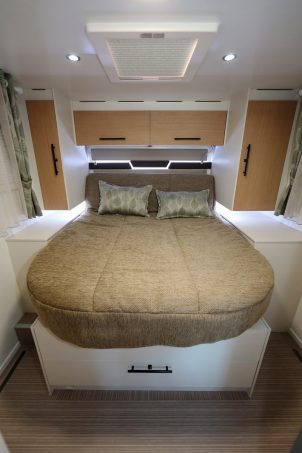 Déclinaison en carrosserie intégrale des Progress, sur châssis auvent Fiat, la gamme des i-Progress est représentée par quatre modèles déjà présents l’an dernier. Les Rubi CF (lit central) et JF (lits jumeaux) avoisinent les 7,20 m de long tandis que les Calvia CF (lit central) et Lorca JF (lits jumeaux) frôlent les 7,50 m. Ces deux derniers sont disponibles en version suréquipée, dénommée Elite Edition, destinée à marquer le centenaire de la marque. Ils offrent quatre vraies places pour voyager et dormir grâce à un second lit double placé au-dessus de la cabine. Comptez de 89 900 à 125 540 € (selon la motorisation et le niveau de finition).