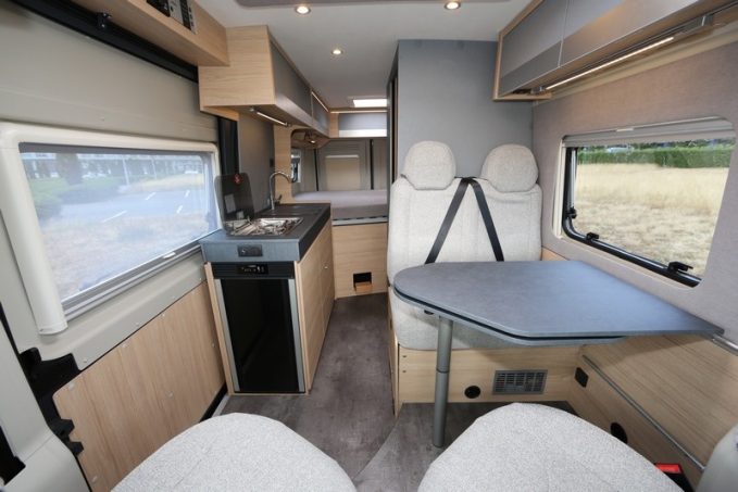 Dans la famille des fourgons “haut de gamme” H-Line (de 5,41 à 6,36 m), les sept modèles déjà au catalogue sont reconduits à l’identique. Les Summit 540 et 600 Plus évoluent toutefois en embarquant un nouveau réfrigérateur Dometic de 100 l. Placé à l’extrémité gauche du bloc-cuisine, il autorise un usage intérieur et extérieur grâce à sa porte à double sens d’ouverture. Sa partie freezer est amovible. Son tableau de ­commande est déporté au-dessus de l’évier. L’occultation de la cabine est réalisée par un store unique (relevable par le haut ou par le bas) provenant aussi de chez Dometic. Le Summit 600 Plus se distingue par une nouvelle penderie. Tous les Summit peuvent être commandés avec un sky roof à entrebâillure (1 750 €) et une banquette avec une 5e place assise escamotable (769 €). D’autres options méritent l'attention, comme celle du toit relevable (de 4 401 à 5 502 €) qui ajoute deux couchages au-dessus du pavillon. Notez que tous les fourgons Pössl sont livrables en Citroën Jumper ou Fiat Ducato (+ 1 000 €). Seul le porteur italien peut recevoir une agréable boîte automatique à 9 rapports.
