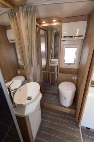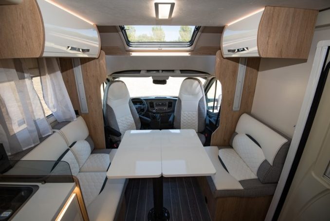 L’italien CI (groupe Trigano) reste l’une des rares marques à couvrir la quasi-intégralité des carrosseries. Ne manque qu’un van à toit relevable, pour être totalement complet. A propos des cellules, l’articulation de gamme étrennée l’an dernier reste d’actualité avec trois finitions : Horon Go, “prêt-à-partir” uniquement sur porteur Ford Transit, Horon, cœur de gamme caractérisé par quelques équipements supplémentaires (panneau solaire 120 W, bas de caisse avec coffre, lanterneau de salle de bains…) et une présentation plus soignée (housses de sièges cabine, pare-chocs peints) et Magis, haut de gamme. Les deux dernières sont disponibles sur Ford Transit 130 ch ou Fiat Ducato 120 ch. On y trouve deux capucines (seulement en Horon Go), neuf profilés de 6,20 à 7,45 m et quatre intégraux de 7,33 à 7,45 m. Deux nouvelles implantations apparaissent au catalogue 2021 : le 34 XT (49 990 € en version Horon, plus 2 000 € en Magis), profilé de 7 m avec lit de pavillon et lit d’appoint dans la soute (propositions à découvrir au catalogue de la marque sœur Roller Team) et le 66 XT (ici en essai) à lit central et salon face-face, déjà aperçu en série limitée Manoa au printemps. Sachez enfin que la série Horon Plus sur Ford Transit 130 ch avec boîte automatique, disponible sur les 66 XT et 67 XT, est reconduite (54 990 €).