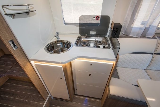 Cette année, les fourgons ont vu leur gamme simplifiée du côté des finitions. Exit les White Edition et autres Limited, place aux Kyros (120 ch, moins de 39 000 €), Go (140 ch, pare-chocs peints, stores de cabine, jantes alliage, lanterneau en dînette, panneau solaire, store extérieur, 42 990 €), Evo (120 ch, découpe cabine, autoradio, caméra de recul table rabattable, 45 790 à 49 790 €) et Elite (sky roof, lumière extérieure, mobilier spécifique, 45 790 à 49 790 €). La seule nouveauté figure dans le Duo XL, au plan similaire à celui de Duo, mais où les lits jumeaux ont été remplacés par un lit de pavillon électrique permettant de faire varier le volume de soute (47 950 € en Evo, 49 790 € en Elite). Enfin, on attend une option toit relevable (5 000 €) disponible sur tous les fourgons Evo et Elite.