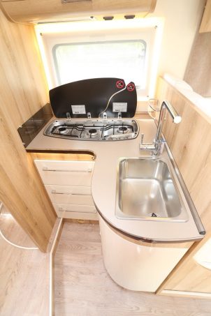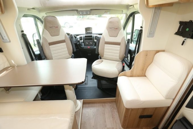 Le catalogue se divise en quatre gammes. Les Sienna sont les meilleurs marchés. On y trouve sept profilés et trois capucines à partir de 44 000 € avec la motorisation 120 ch. Un profilé compact s’installe au catalogue, le 322. Il comporte un grand lit transversal sur garage, une petite cuisine latérale, un salon surmonté d’un lit de pavillon une place. Viennent ensuite les Therry, au nombre de six profilés disponibles aux environs de 56 000 € l’unité. Puis arrivent les G-Line, deux modèles d’intégraux dont le tarif est inférieur à 68 000 €. Enfin, le catalogue 2021 voit arriver deux fourgons aménagés (GiottiLine Van) qui, synergie de groupe oblige, ressemblent à quelques Dreamer conçus chez Campérêve, également du groupe Rapido. Les prix des GiottiLine Van collent parfaitement à la stratégie commerciale de la marque, correspondant à politique de prix bas.