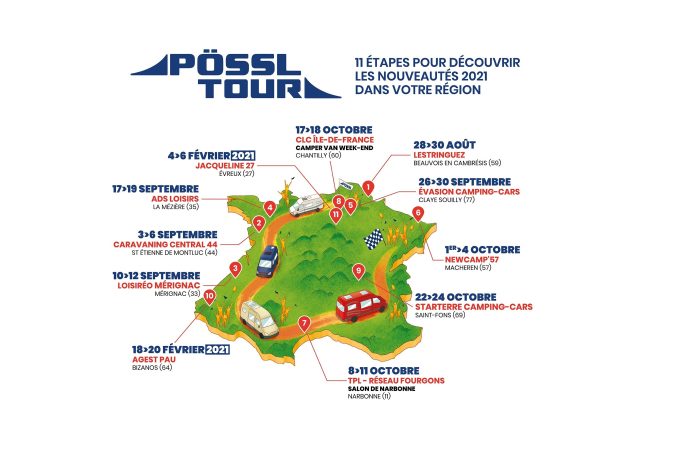 L’Allemand Pössl, en cumulant ses différentes marques (Roadcar, Globecar, Campster, Vanster), est le plus gros aménageur de fourgons en Europe. Et pour présenter toutes ses nouveautés 2021, Pössl avait entamé un tour de France en 11 étapes. Le deuxième confinement n’a pas permis d’achever ce tour de France. Fort heureusement, Pössl a reprogrammé les deux dernières étapes ce mois-ci, afin de boucler la boucle. Ainsi, le Pössl Tour reprend sa route à Evreux (27), dans la concession Jacqueline 27, du 4 au 6 février. Ensuite, direction les Pyrénées-Atlantiques pour un stop à la concession Agest Pau, du 18 au 20 février. Deux rendez-vous qui donneront l’occasion aux visiteurs de découvrir les modèles inscrits au catalogue 2021 du constructeur.