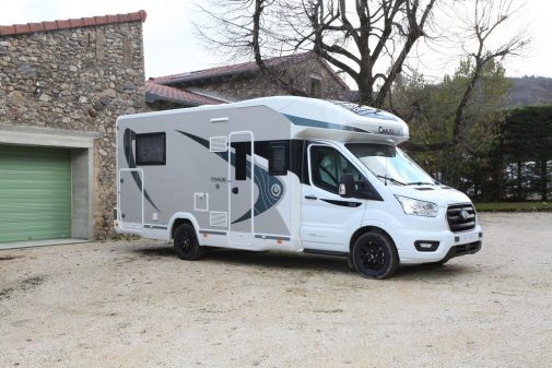 Sur un autre registre donc, le 640 conviendra aux adeptes de profilés courts sans lit au plancher. Nous ne cessons de le répéter, mais cette implantation se positionne depuis plusieurs saisons comme la meilleure vente du constructeur ardéchois, et ce, au niveau européen. Dans ce véhicule de 6,99 m, l'espace est la maître-mot. Le 640 s'appuie sur un salon face-face gigantesque où 8 personnes peuvent prendre place. En partie arrière, la salle d'eau transversale séduit par ses dimensions (notamment en douche), mais aussi par son volume de rangement grâce au vaste dressing. Ce 640 Anniversary profite du même niveau d'équipement que son grand frère (Pack Connect, 170 ch et boîte auto...). En revanche, il affiche un prix inférieur de 56 990 €.