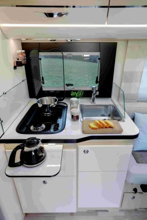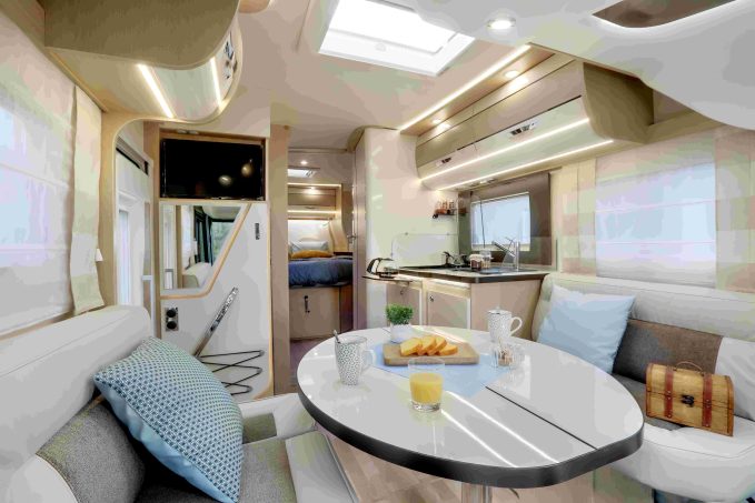 un GPS camping-car, un kit d’ambiance simili cuir (bleu, rose ou orange), des sièges de cabine grand confort et des jantes alliage 16”.