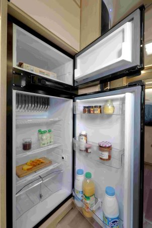 Chez Autostar, le Passion I721 LCA est une des nouveautés de la collection 2021. Cet intégral est effectivement entré au catalogue du constructeur breton cette année et connaît déjà un vif succès. Il est vrai qu’il coche toutes les bonnes cases pour correspondre aux goûts actuels des utilisateurs. La partie avant est occupée par un joli et vaste salon lounge, la cuisine centrale est parfaitement équipée, recevant même un grand réfrigérateur ; la salle d’eau est en deux compartiments, réunissables pour former un grand local ; la chambre, enfin, est flanquée d’un vaste lit central (150 x 190 à 198 cm) sur garage à hauteur variable.