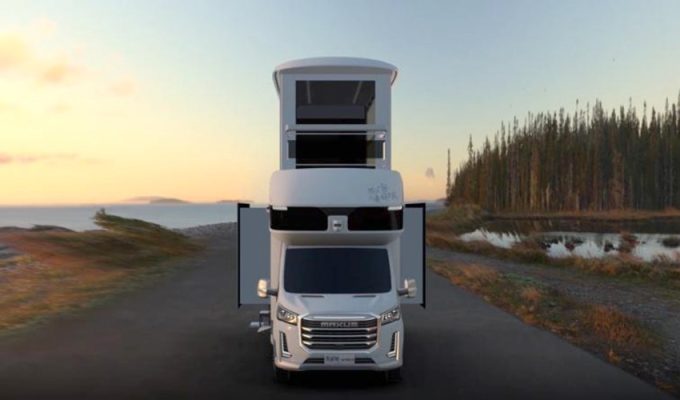 Même s'il n'est pas interdit de rêver, cet étonnant camping-car chinois ne franchira sans doute jamais les frontières de l'Hexagone. Maxus, constructeur intégré au consortium automobile Shanghai Automotive Industry Corporation (SAIC Motor), vient de présenter ce projet qui ne manque pas d'originalité.