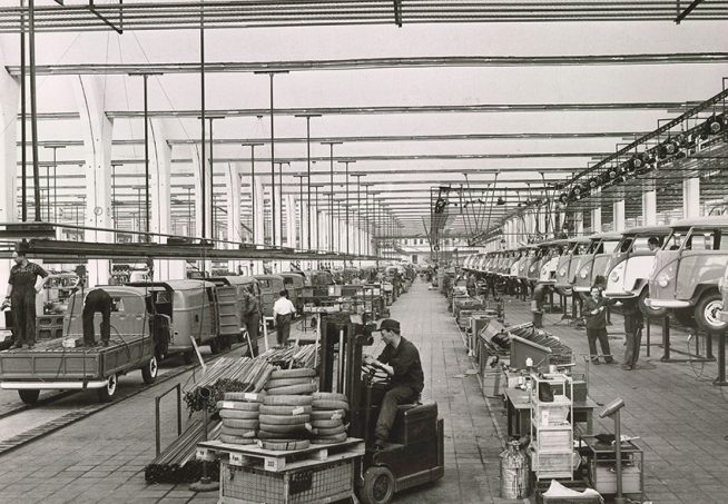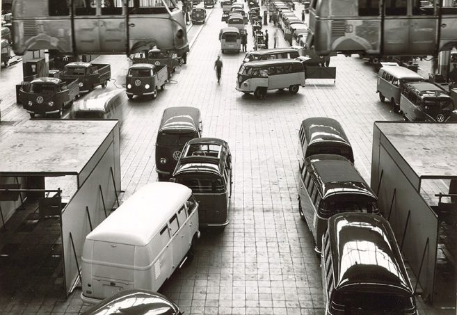 À partir du mois de mai 1955, quelque 2 000 ouvriers travaillent quotidiennement sur ce gigantesque site. Dans le même temps, Volkswagen forme les nouveaux employés qui auront en charge la production des Transporter. Tous les jours, à 4h10, un train spécialement affrété les emmène depuis la gare centrale de Hanovre jusqu’à Wolfsburg (siège de Volkswagen) où ils se forment aux techniques d'assemblage du Combi. 3 000 employés devront assurer le bon démarrage de la production. En quelques semaines, les chaînes de production pour les carrosseries sont installées. En février 1956, la connexion ferroviaire de 10 km jusqu’à l’usine est achevée pour débuter la grande aventure du célèbre Transporter.
