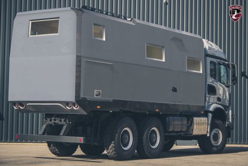Ce véhicule se destine à des voyages au long cours où l'autonomie a été particulièrement recherchée par les futurs utilisateurs. Ce véhicule devrait au final disposer de 1600 l de fluides répartis dans trois réservoirs distincts. Pour ce modèle, 3C Cartier a particulièrement travaillé sur leur intégration afin de les loger dans le double-plancher structurel. Désormais, il a rejoint par la route l'atelier Brisebras, situé à Roanne, qui va s'atteler à l'agencement intérieur durant les prochains mois. Affaire à suivre, donc...
