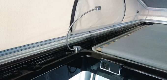 Mais l’innovation ne se limite pas à l’aspect technologique : elle touche également l’esthétique et la fonctionnalité, puisqu’elle permet de créer une véritable chambre à coucher supplémentaire lorsque le toit Pop-Up est ouvert. C'est la raison pour laquelle la partie supérieure du mobilier est équipée d’éclairage interne, de spots pour la lecture, de prises pour recharger les smartphones et de bouches d’aération périmétrales pour la climatisation. Le rideau, également disponible en version ignifuge, est entièrement lavable et 100% fabriqué en Italie. VELA peut être doté de hublots et modules photovoltaïques et, sur certains modèles de Fiat Ducato, il permet également de monter un climatiseur sur le toit.