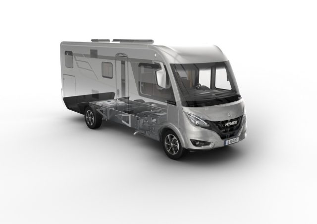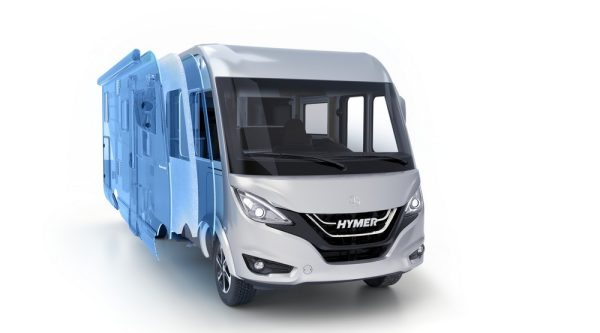 Hymer est même allé bien au-delà de cette contrainte. Le bureau d’étude de Bad Waldsee a œuvré durement pour imaginer un nouveau châssis robuste et surtout plus léger baptisée SLC (acronyme signifiant Châssis Super Léger en anglais). Cette base technique se manifeste par un plancher totalement plat monté sur une structure en PRV. Pour la conception, Hymer fait appel désormais à un assemblage de plusieurs cloisons. Ces petits « compartiments » sont astucieusement mis à profit pour loger les éléments techniques, à commencer par les réserves d’eau propre et usées afin de leur garantir protection et surtout isolation.