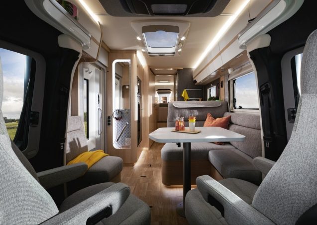 Indéniablement, le porteur à l’étoile propose un agrément de conduite digne d’une berline de la marque comme la direction assistée électrique, l’aide à la stabilisation en cas de vent latéral, l’assistant vocal… sans oublier de mentionner évidemment la merveilleuse boîte automatique 9G-Tronic. Anticipation et fluidité des rapports, elle se révèle performante et moins onéreuse à l’achat que d’autres concurrents. Sur un autre registre, les intégraux Hymer sont les seuls du marché à profiter du système Distronic Plus, qui en d’autres termes, a pour but d’évaluer automatiquement la distance avec le véhicule qui vous précède. En prime, il est équipé d’un assistant actif de freinage en cas d’urgence.