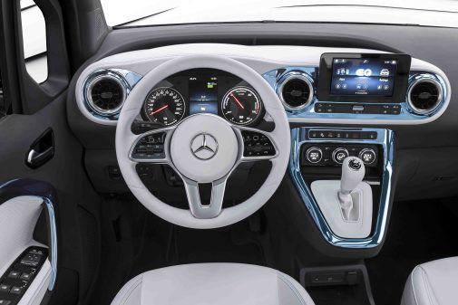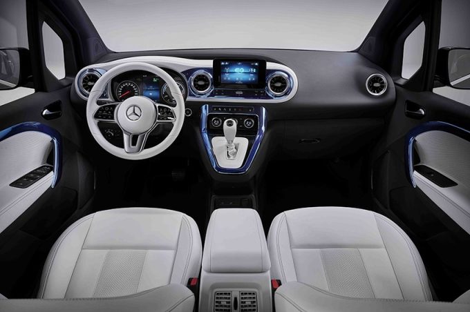 Ce show-car roulant électrique, très proche du véhicule de série à venir, propose à la fois de l'espace et une grande polyvalence. Cette version la plus imposante du Classe T (4,95 m de long pour 1,86 m de large et 1,83 m de haut) pourra accueillir de cinq à sept personnes, tout en conservant un généreux coffre. De quoi en faire un véhicule Premium familial intéressant pour un usage loisirs, comme le Classe V, son aîné, très prisé de certains aménageurs dans sa déclinaison utilitaire Vito.