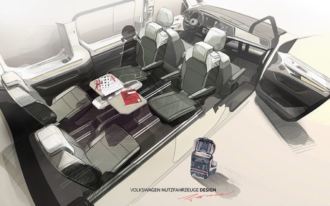 Quant à son intérieur, le Multivan T7 se veut polyvalent : « Conçu avant tout pour les familles et les sportifs actifs, le Multivan s'adapte, avec son tout nouveau système de sièges et d'espace de chargement dans d'innombrables scénarios de mobilité », assure le constructeur. Pour ce faire, les sièges individuels sont modulables et installés sur un rail.