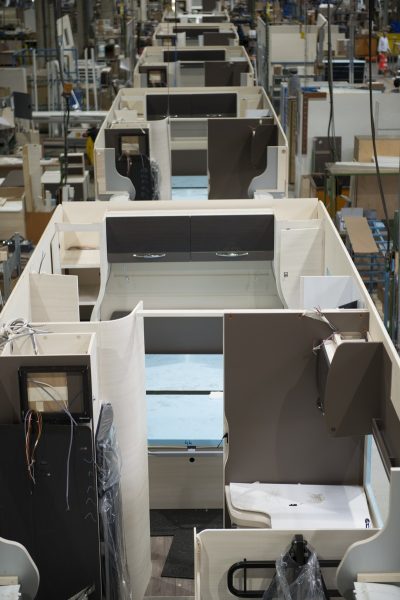 La construction d’un atelier de 5000m2 dédié aux finitions et aux contrôles qualité, à 2 lignes de montage de 41 postes. Cette nouvelle organisation a permis d’optimiser les postes de contrôle qualité et retouches sur nos lignes de production et donc d’améliorer la qualité.