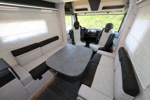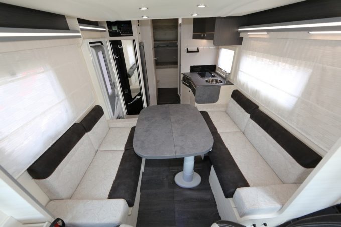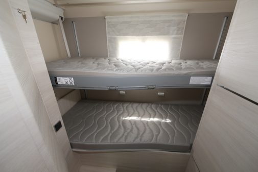 Cette zone profite d'un couchage simple sur soute surmonté d'un lit en pavillon électrique. Une chambre s'appuyant donc sur des lits superposés, le véritable atout de ce poste modulable. Pour la zone sanitaire, le 7020 est équipé d'une douche indépendante du cabinet de toilette. Ces deux espaces peuvent néanmoins être réunis en transversal, isolant alors et totalement la chambre enfants. Cette nouveauté est proposée en deux niveaux de finition. L'entrée de gamme dite Start Edition est commercialisée à partir de 68 490 € avec la motorisation 2,2 l/120 ch de base. Pour une prestation supérieure, à commencer par une puissance plus élevée (140 ch), il faudra alors opter pour le niveau de gamme dit Graphite Premium, proposé pour sa part à 72 490 €. Pour ce tarif, la dotation d'origine est sérieusement rehaussée avec, notamment, la boîte auto, les parois gris taupe, la douchette extérieure, la porte luxe avec fermeture centralisée...
