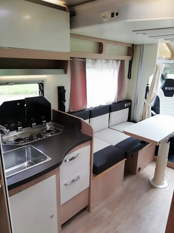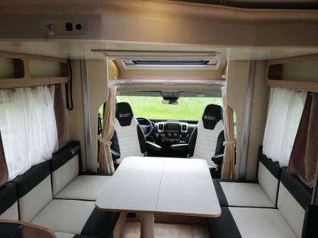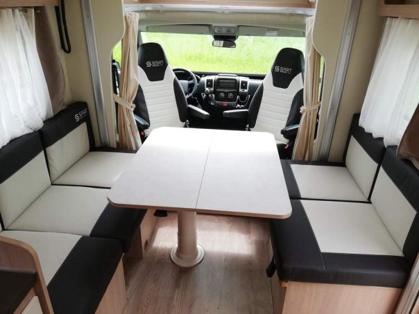 Ce profilé arbore une cellule de 6,36 m de longueur et profite d'un empattement de 3,80 m avec un porte-à-faux de 1,62 m. Ce véhicule compact affiche un habitacle très aéré dans lequel le salon reste le poste majeur. La dînette se compose de larges banquettes en vis-à-vis associées aux sièges pivotant de la cabine. Avec sa table montée sur un pied central télescopique, cet espace repas peut se convertir à l'étape en couchage double de 156/110 x 202 cm.