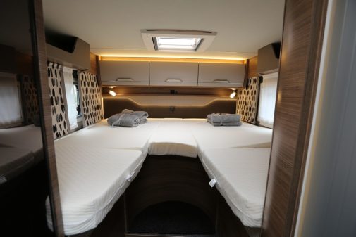 Au passage, ce véhicule arbore une face arrière inédite dans la ligne certes, mais également dans la forme. Knaus a en effet développé une paroi plane dite FoldXpand qui permet d'allier design tout en optimisant l'espace intérieur. Par ce système, les ingénieurs revendiquent un gain de 10 cm par rapport à la précédente collection. Long de 6,86 m, ce profilé dispose dans l'habitacle d'une chambre arrière avec de grands lits jumeaux de près de 2 m et reposant sur une vaste soute garage.
