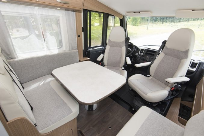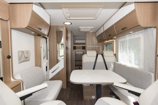 Le modèle présenté est l'I447, disposant de lits jumeaux en partie arrière dans une cellule de 7,40 m de long. La chambre est accolée au poste sanitaire en deux parties mais pouvant si besoin être réuni pour former un vaste cabinet de toilette transversal. En partie avant, on trouve un beau salon pour 6 personnes avec banquette face route et retour en L, un sofa latéral et les sièges pivotants de la cabine. Le I 447 est commercialisé à partir de 61 310 €. Il existe aussi en édition limitée "Edition 15" célébrant -comme son nom l'indique - les 15 ans d'existences de la marque. Il est alors proposé à partir de 65 970 € avec une dotation supérieure à la version classique, à commencer par la motorisation de 140 ch.