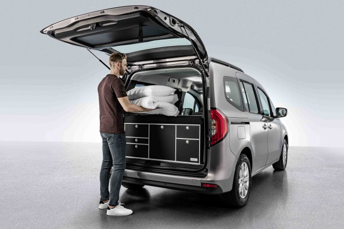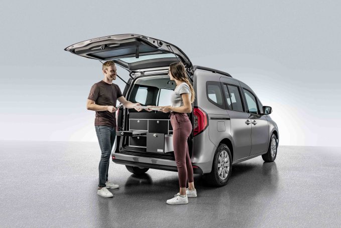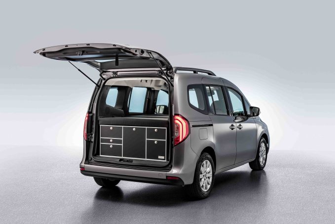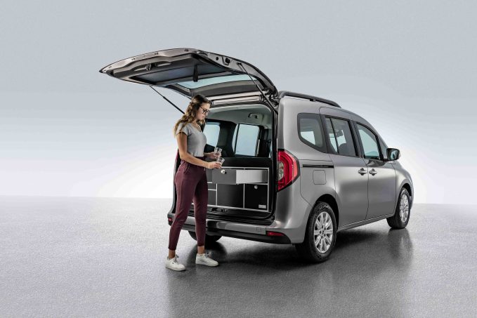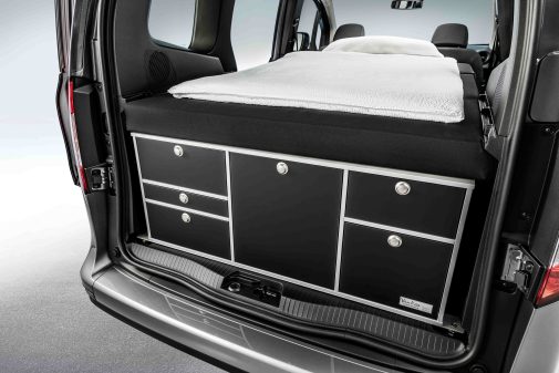 Pour élargir la fonction utilitaire du Citan à celle de loisir, Mercedes utilise des équipements élaborés par VanEssa mobilcamping. Pour goûter à la ''van life attitude'' en mode plus compact que celle d'un van Marco Polo, la partie arrière reçoit un caisson servant de kitchenette. Il comprend un réchaud à gaz, un évier avec réserve d’eau de 13 litres et un réfrigérateur à compression de 31 litres. Différents tiroirs sont aussi prévus pour ranger la vaisselle, les casseroles, poêles et autres ustensiles. Ce module pèse environ 60 kg et peut être (dés)installé en quelques minutes. Son fabricant le propose en divers coloris pour qu'il soit assorti à la teinte de carrosserie. Avec le système de couchage VanEssa, l’arrière du Citan peut être transformé en lit de 115 x 189 cm, à l'étape. De quoi faire dormir deux personnes confortablement sur un matelas de haute qualité. En circulation, le système reste plié dans le coffre au-dessus de la cuisine mobile. Les trois assises arrière peuvent ainsi être pleinement utilisées.
