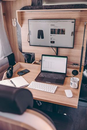 Sur le concept présenté, on y distingue un écran supplémentaire en façade, en complément de celui de l'ordinateur portable, de multiples prises 220 V et USB, un éclairage à LED et même une base à induction pour recharger son téléphone. Ce prototype a été développé (et présenté) sur un profilé T68, un véhicule de 7,40 m dont le salon est composé d'une banquette face route. Pour Fabian, " le concept de Sunlight s'adresse à toutes sortes de métiers : ceux, bien sûr, qui peuvent travailler à distance et redéfiniront leur lieu de travail. Mais aussi des vendeurs, des scientifiques sur le terrain – par exemple des géologues ou des biologistes – ainsi que des chefs de chantier, des architectes, etc. Au lieu de séjourner dans un hôtel stérile, le Home Office on Wheels offre une solution flexible, professionnelle et confortable". Fort de ce constat, la marque allemande pourrait proposer le "Home Office on Wheels" sur l'ensemble de ses camping-cars et fourgons, en dehors des modèles avec salon face-face. Le travail nomade est en route.