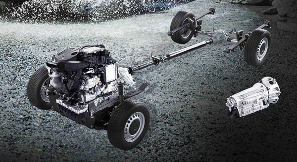 La version à transmission intégrale évolue, elle aussi, en adoptant un système de couple à la demande. Contrairement au mécanisme antérieur enclenchable, qui fournissait 35 % du couple à l'essieu avant et 65 % à l'essieu arrière en mode 4x4, le couple peut désormais être distribué de manière variable entre les deux trains selon la situation et sans aucune action du conducteur. Un embrayage multidisque électrohydraulique, intégré à la boîte de transfert, assure cette fonction. Si l'embrayage multidisque est désactivé lors de la conduite normale, seul l'essieu arrière entraîne le véhicule. Quand l'embrayage est enclenché, l'essieu avant intervient. Au total, jusqu'à 50 % du couple peut lui être fourni. Cela assure une adhérence élevée et une maniabilité sans efforts. La pression du système qui active l'essieu antérieur est disponible en quelques millisecondes (pompe à rotor). Celle-ci est activée seule même en cas de légères différences de vitesse moteur entre les essieux avant et arrière. Dès que la situation le demande, le couple de transmission est fourni à l'essieu avant. Dès que cela n'est plus nécessaire, par exemple lors d'un freinage puissant avec intervention de l'ABS, la transmission avant est désolidarisée pour réduire son couple à zéro. Avec un véhicule très chargé, en cas de risque de sous-virage (train avant qui glisse) ou de survirage (train arrière qui s'échappe), le couple est distribué de façon à le stabiliser. En situation d'urgence, les systèmes de contrôle électroniques (ESP et 4ETS) peuvent venir en renfort. Plus silencieux et financièrement avantageux, ce système 4x4 évolué sera compatible avec la transmission automatique 9G-Tronic.