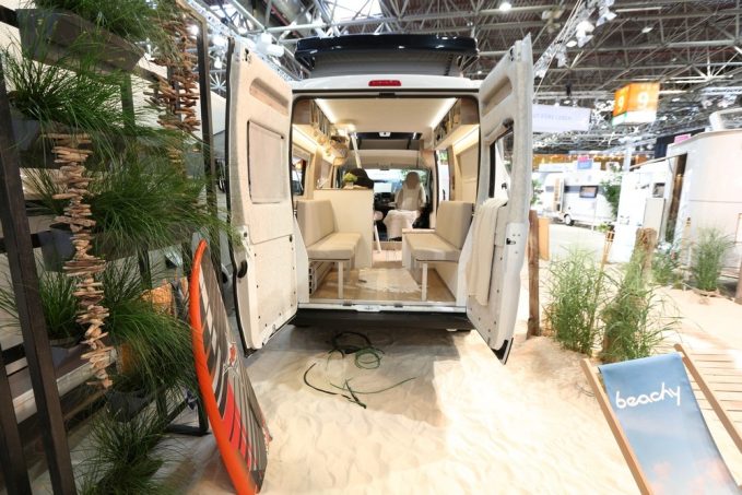 L'an passé, Hobby lançait son projet "Beachy" inauguré par une nouvelle génération de caravanes qui, par un savoureux mélange d'implantations sommaires et d'un décor moderne, a pour but de séduire les jeunes. Mieux, l'objectif est également d'afficher un tarif attractif pour, vous l'aurez compris, augmenter le pouvoir de séduction auprès des primo-accédants. Fort d'un bon accueil, Hobby poursuit sa démarche en déclinant ce concept sur l'univers du fourgon avec la présentation pour la première fois durant le Caravan Salon de Düsseldorf, du Beachy Van.