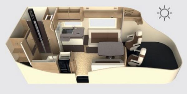 Ce modèle est qualifié d'ultra-compact par la marque : le P600 ne mesure en effet que 6,13 m de long. Et sa largeur est de seulement 2,16 m. Autant dire que ce micro-profilé vient concurrencer directement les fourgons aménagés. D'autant plus que son isolation et surtout son implantation sont plus "performantes".