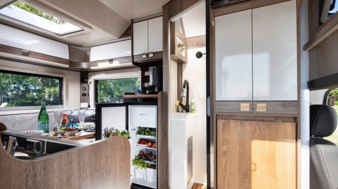 La qualité de présentation fait plutôt bonne figure comme les équipements. Ce profilé dispose d'un réfrigérateur Thetford de 90 l, d'un combiné de chauffage Truma au gaz (ou à carburant), une réserve d'eau propre de 150 l (88 l destinés aux eaux usées).
