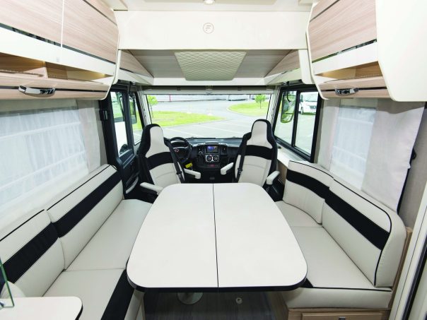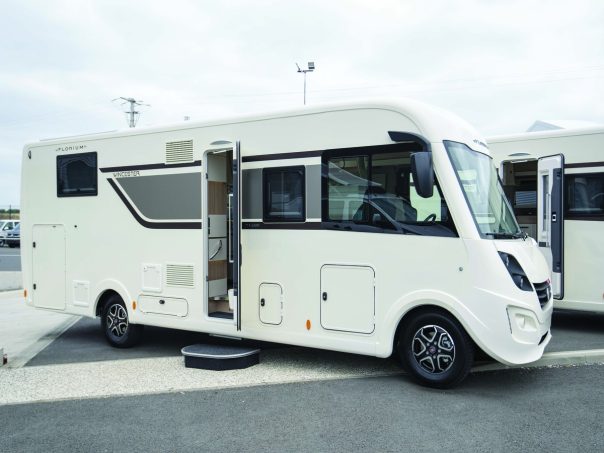 Pour les lecteurs qui ne connaîtraient pas cette marque, celle-ci se distingue par la carrosserie tout polyester de ses modèles. Face avant des intégraux, casquettes des profilés, panneaux sandwich, face arrière, bas de caisse et même bacs à douche sont fabriqués dans l’atelier polyester où travaille un personnel qualifié, maîtrisant à la perfection ce matériau qui résiste très bien au temps et aux impacts de grêle. Par ailleurs, quiconque sait travailler le polyester peut le réparer.