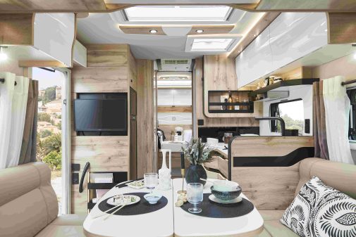 Les intégraux "Héritage" peuvent être équipés du système de caméra Drone View qui offre une vision à 360 ° du véhicule. Ce système fonctionne avec 4 caméras haute définition qui filment à 180°. Elles sont disposées sur les 4 côtés du véhicule et reliées à un écran 7 pouces ou 8 pouces. Les images captées délivrent une image de synthèse du camping-car dans son environnement. Un peu comme s’il était survolé par un drone. L’outil améliore la sécurité au roulage en gommant les angles morts et facilite le stationnement. Le Drone View peut aussi se transformer en dashcam en option, devenant alors un système de vidéosurveillance à l’étape, de jour comme de nuit, grâce à sa vision nocturne.