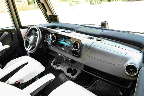 La dernière génération du Mercedes Sprinter est animée par un moteur 4-cylindres, 2,2 litres de 143 ch (170 ch, en option), couplé à une boîte manuelle 6 rapports ou, en option, à la merveilleuse boîte auto 9G-TRONIC. Le Sprinter se distingue aussi par de nombreux éléments de confort et de sécurité référencés ci-dessous :