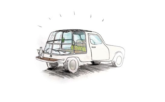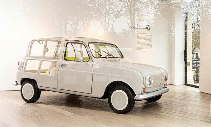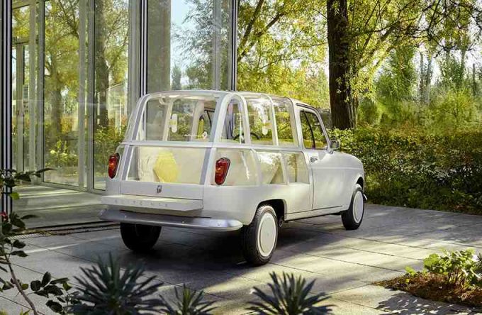 Si ce concept inédit, réalisé en 5 semaines, conserve les proportions et les lignes extérieures du modèle iconique, il est radicalement transformé. La carrosserie de la partie arrière ainsi que le hayon sont remplacés par une verrière en polycarbonate afin d'apporter un maximum de luminosité à bord. Sur le toit, une grille de panneaux solaires laisse passer les rayons du soleil en transparence tout en facilitant la recharge de la batterie du véhicule, 100% électrique. Cette R4 a en effet délaissé son 4 cylindres essence pour un électromoteur plus dans l'air du temps.