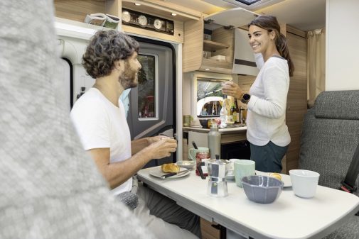 Outre cet habitacle flatteur, les Globebus font preuve d’une grande habitabilité à bord avec une parfaite maitrise des postes. Salon pour 4 confortable, salle d’eau 2-en-1 avec paroi pivotante, lits spacieux et matelas agréables… même la cuisine a été revisitée avec un nouvel emplacement de la plaque de cuisson et du lavabo. Cette disposition permet de gagner en surface de travail.