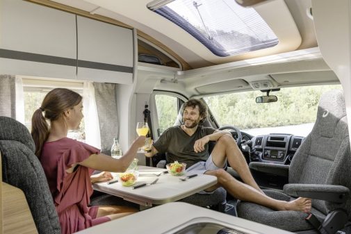 Cette gamme propose cette saison une offre riche de 4 modèles affichant une largeur commune de 2,20 m. Cette cellule étroite engendre également une longueur réduite de seulement 5,99 m pour les modèles I et T 1 avec lit transversal, et 6,98 m pour les I et T 6 avec lits jumeaux. Vous l’aurez compris, cette série Globebus s’appuie sur deux implantations déclinées en profilé et en intégral. Dethleffs est le rare constructeur à proposer des véhicules étroits dans les deux carrosseries.