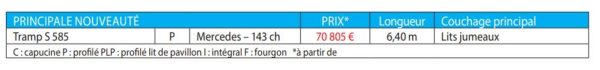 - B-ML T : un unique modèle poids lourd, le 780 sur Sprinter 413, 143 ch, vendu 97 225 €.