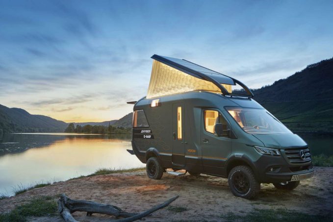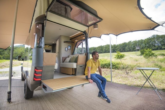 Avec son Vision Venture, Hymer signe sans doute l'un des prototypes les plus surprenants et le plus aboutis jusqu'à présent. Ce véhicule est le fruit d'une collaboration entre le constructeur allemand et le plus grand groupe de chimie BASF. La carrosserie, par exemple, bénéficie d’une peinture dite Chromacool, hautement technique, qui a pour but de refléter la lumière et d'améliorer l’isolation de la cellule. Sur un autre registre, des éléments extérieurs et intérieurs ont été réalisés par une imprimante 3D comme les passages de roues.
