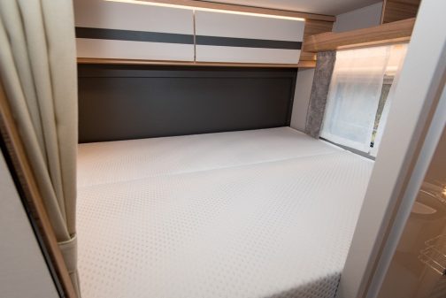 Côté sanitaire, ce Globebus I1 dispose d'un ensemble modulable avec un cabinet de toilette comprenant WC et lavabo. La paroi pivote ensuite pour créer une cabine de douche. Ce modèle de seulement 5,99 m de longueur est doté de la motorisation 2,2 l de 140 ch d'origine et s'affiche à un tarif de base de 70 430 €, prix auquel certaines options viennent enrichir le véhicule... et augmenter la facture comme le Pack Design GT White (3190 €), le store extérieur (1015 €), le porte-vélos 3 places (455 €) et la caméra de recul (455 €).